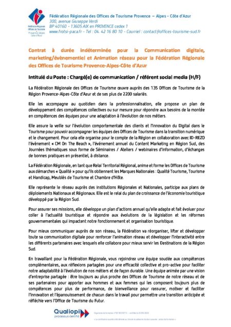 Profil de poste contrat d’alternance com digital Marketing Evènementiel Animation réseau FROT SUD